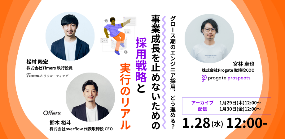 若手・新卒層、ハイスペック人材の採用、そして採用を継続的に回すための体制づくりまで、現場で語られる“実行のリアル”を通じて、事業成長を止めないエンジニア採用の考え方をお届けします。