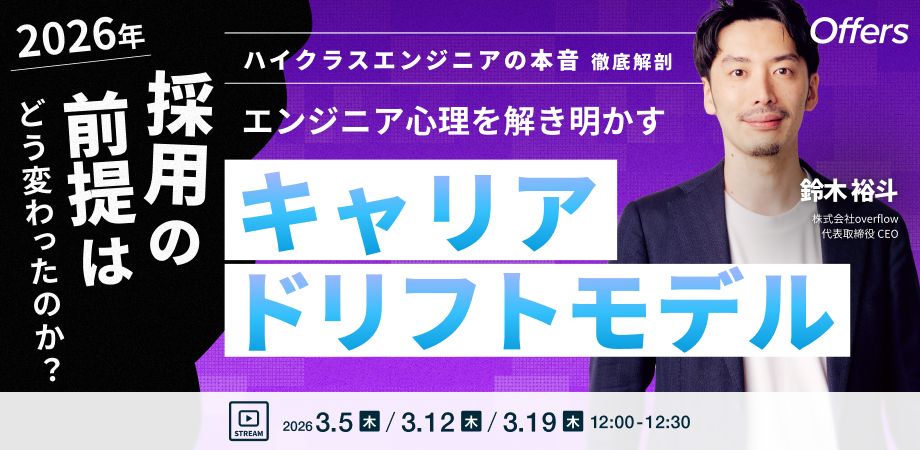 本セミナーでは、エンジニアの深層心理を紐解く「キャリアドリフトモデル」と、実例に基づく「ストーリースカウト」の手法を用いて、以下のトピックを徹底解剖します。