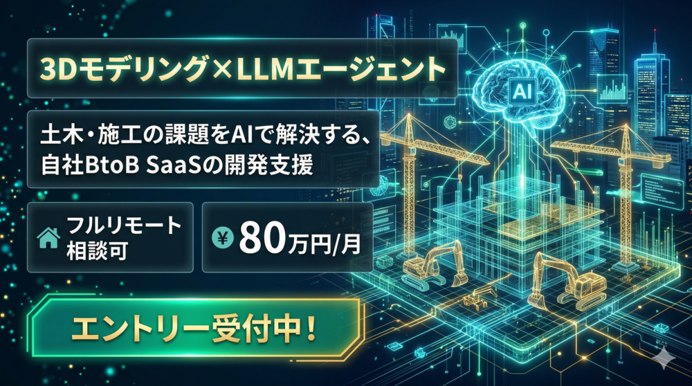 ■ この案件の「熱量」と「エンジニアとしての面白さ」 紙の図面や膨大な技術文書が今も主役である土木・建設業界。 ここにAIのメスを入れ、設計・施工のプロセスを劇的に効率化するBtoB SaaSプロダクトのコアメンバーを募集します。