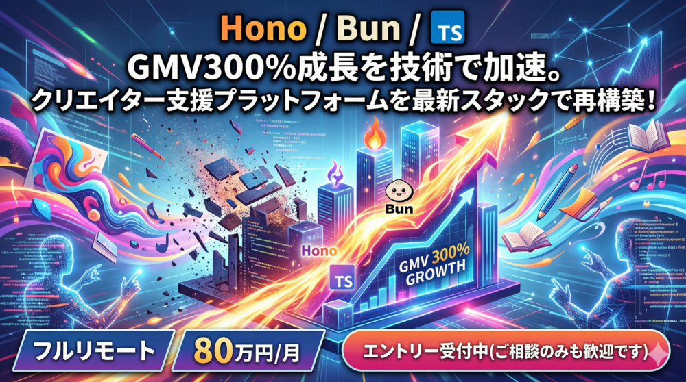 ■ 開発スタック・環境の魅力 ・技術選定: TypeScript, React, Python, Hono, Bun ・インフラ: コンテナベース、サーバーレスなど最新のクラウドネイティブ環境 ・体制: 「エンジニア=作る人」という壁がないフラットな組織。プロダクトの意思決定に深く関与できる文化です。 ・魅力: HonoやBunといった、まだ「実戦投入」の事例が少ないエッジな技術を大規模な本番環境で使い倒せる希少なチャンスです。
