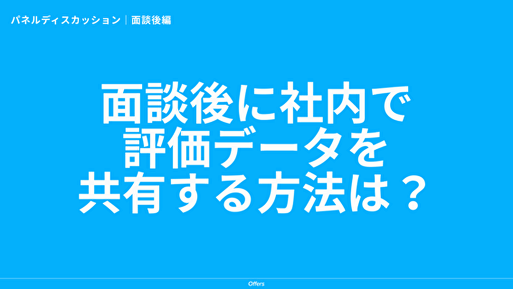 - 面談後に候補者に対しての評価やネクストアクションを社内で共有されると思います。皆さんがどういった形で実施されているか、お伺いしたいです。