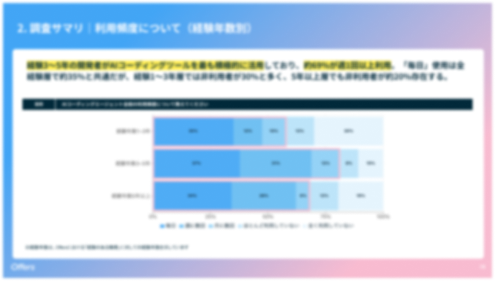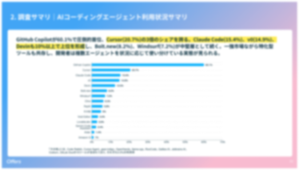 このような状況を受け、Offersサービスの会員208名を対象に、AIコーディングエージェントの実際の活用状況について詳細な調査を実施しました。